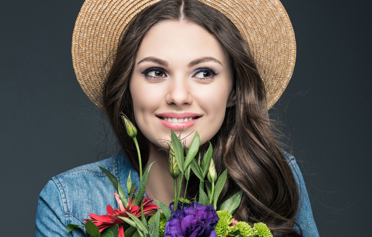 Изображение: Девушка в шляпке с цветами