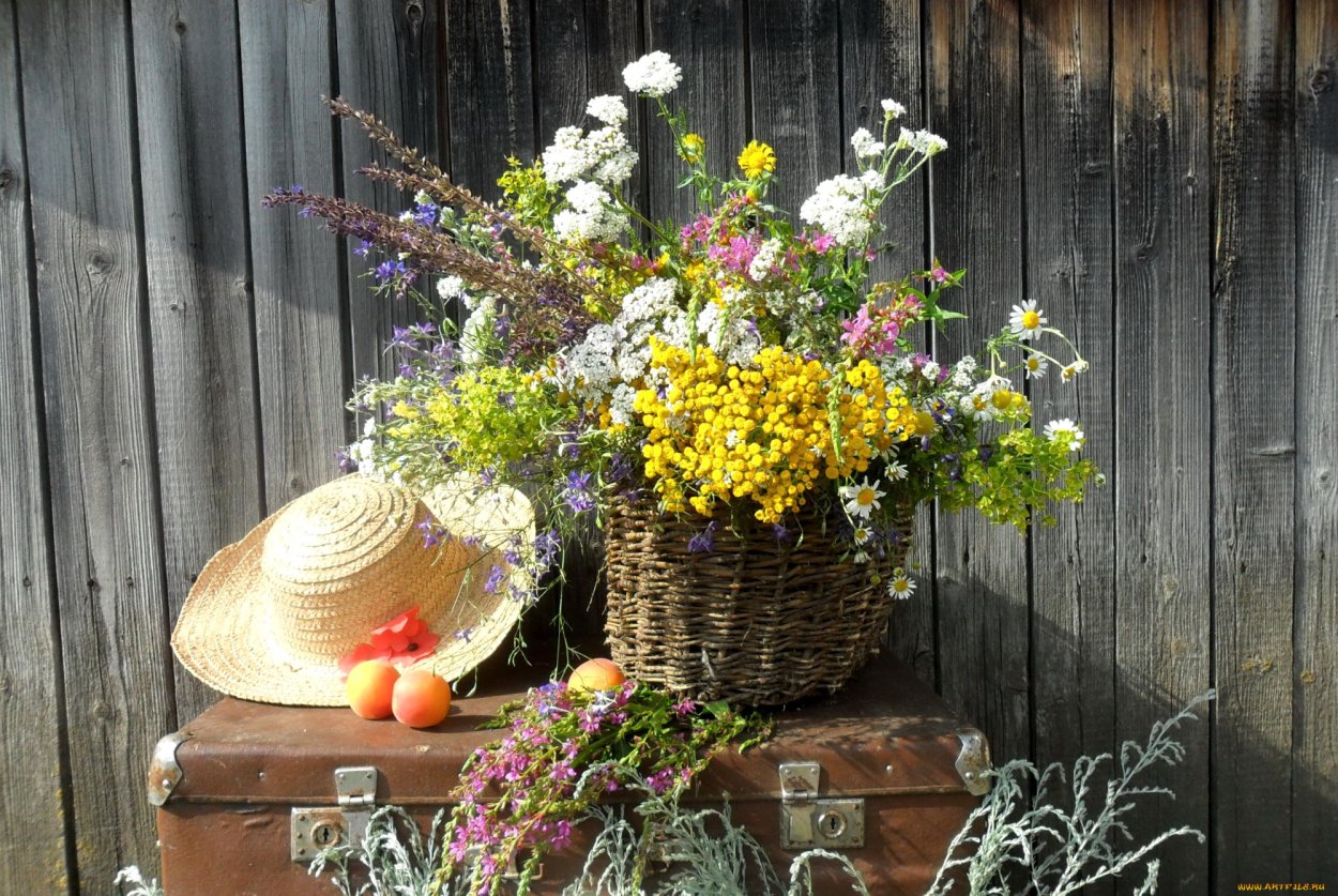 Изображение: Соломенная шляпа и букеты